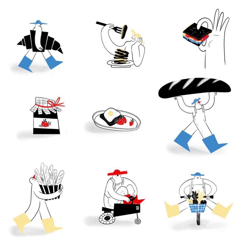 A charming series of hand-drawn spot illustrations celebrating the simple joys of food and farming. From farm-fresh ingredients to the first cup of coffee, this collection captures the ‘farm-to-table’ journey with a touch of surreal humor.